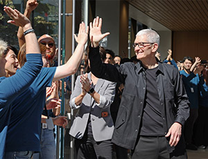 クックCEOはアップル銀座のスタッフとハイタッチ