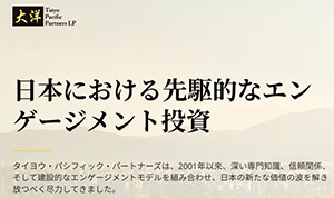 米国西海岸ワシントン州に本拠地をおくタイヨウは「対話型ファンド」として知られた。村上ファンドのように「自社株買い」といった要求を突きつけるのではなく、経営者に寄り添う運用会社として、設立当時は「資本コスト経営」といった新しい企業財務のコンセプトを指南する手法に特徴があった。
