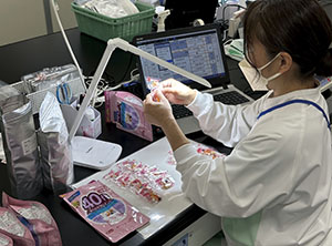 製品は製造ロット毎に、外観や性状、割れにくさ、溶けやすさ、異物の混入を検査している。微生物の混入の有無は培地に一定時間植えて有害な菌がいないかを確認。分包製品については袋の開封しやすさや密封性をヒトの手と目で確認している。