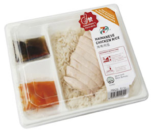 ゆで鶏と、そのゆで汁で炊いたご飯を盛りつけた「チキンライス」は、シンガポールの食文化を代表するメニューともいえる。そこに至るまで、現地の屋台や家庭料理などで人気のある食べ物は何なのか、現地スタッフと共に探し求めた。セブン‐イレブンのオリジナル商品として、チキンライスを現地の店舗で提供することができるまでに半年くらいかかった。