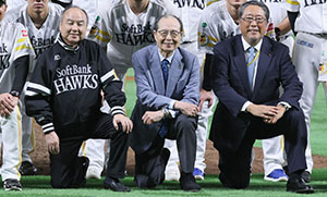 左から孫正義オーナー、王貞治球団会長、後藤芳光オーナー代行(24年9月23日)