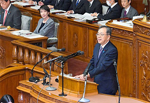 代表質問を行う公明党の斉藤代表(11月5日、同党HPより)